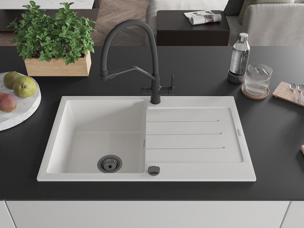 Technická data: dřez: Rozměr: 795 x 495 x 200 mm Hloubka komory: 200 mm Rozměry komory: 440×360 mm Průměr odtoku: ø90 mm Typ: 1-miska s odkapávačem Typ: Zapuštěné do pracovní desky bílá barva Povrchová úprava sifonu: černá Materiál: žula (80 % žulové kamenivo, 20 % pryskyřice) Přepadový otvor: Ano Otvory: (baterie, automatické) 2 Instalace: Univerzální, lze instalovat s odkapávačem na levou nebo pravou stranu Vysoká odolnost proti poškrábání a změně barvy Odolnost proti tepelným šokům Snadno…