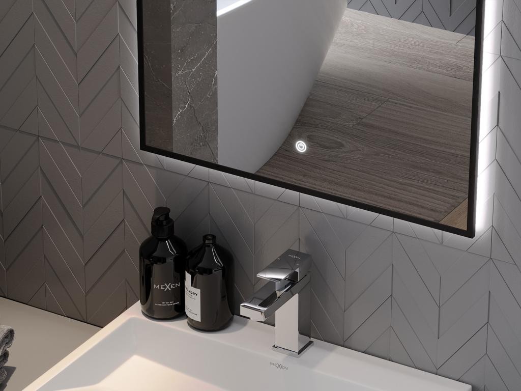 Erma zrcadlo s osvětlením od MEXEN – ideální řešení pro vaši koupelnu. Zrcadlo s LED osvětlením 6000. K a černým rámem. Připraveno pro připojení k elektroinstalaci ve zdi.