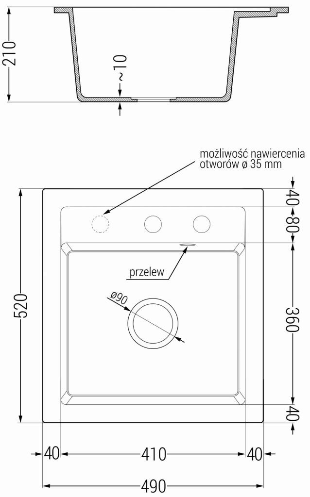 Jeden další vyfrézovaný otvor pro vlastní děrování ø35