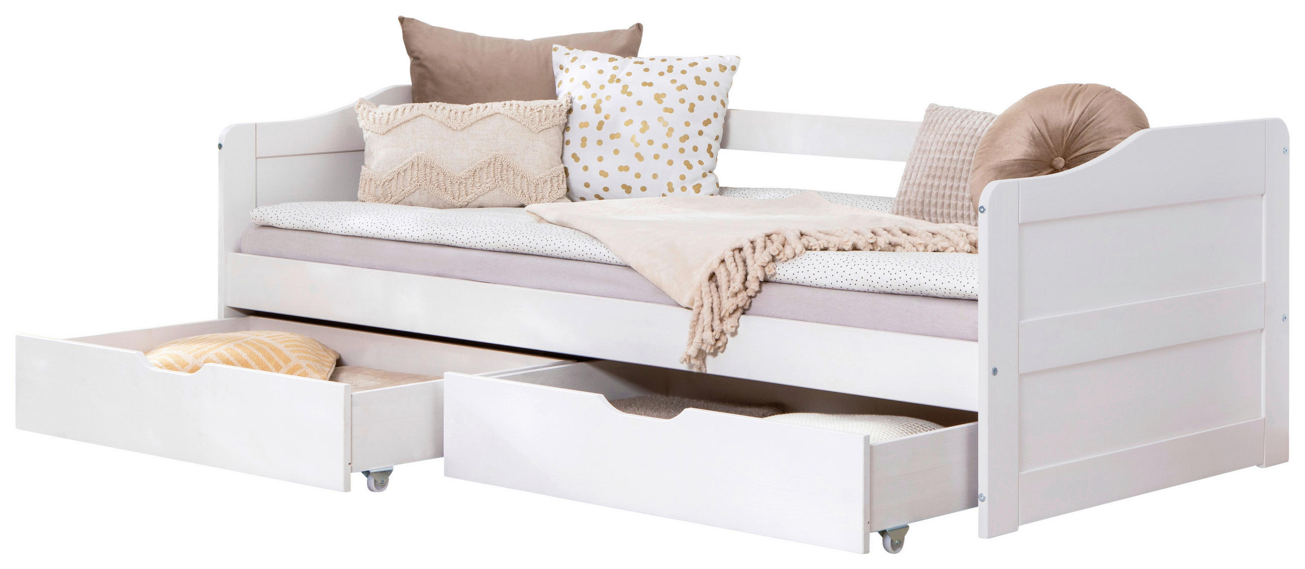 -15%POSTEL S ÚLOŽ. NÝM PROSTOREM, 90/200 cm, bílá – ONLINE D,TYP: 970477 – WEISS, INKL: 2 SCHUBKÄSTEN – B/H/T/ 204/66/96 CM