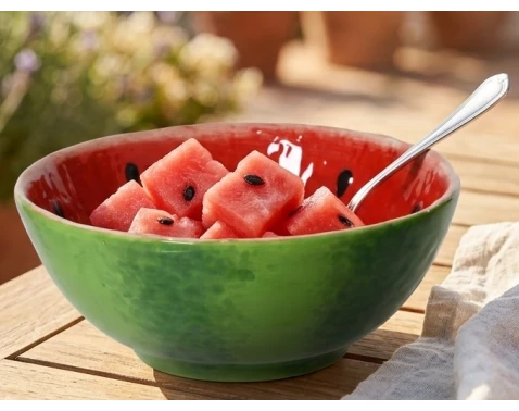 Stylová miska s melounovým motivem je praktickým i designovým doplňkem do kuchyně i na zahradu. Průměr 15 cm.