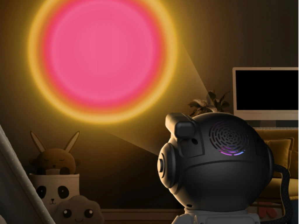 Magická obloha přímo ve vašem pokojiVytvořte kouzelnou atmosféruMini projektor promění každý pokoj v uklidňující vesmírnou scenérii plnou barev a světelných efektů, jako je západ slunce nebo polární záře. Projekce v kombinaci s jemnými ASMR zvuky vesmíru, vln a přírody navozuje příjemnou atmosféru, která dětem usnadňuje usínání i večerní relaxaci.Díky kompaktním rozměrům, výdrži až 7 hodin a možnosti napájení přes USB nebo dobíjecí baterii je ideální na doma i na cesty. Pohodlné ovládání na dálku umožňuje snadno měnit režimy bez vstávání, takže si děti i rodiče užijí maximální komfort a klid.Stylový projektor s flexibilním ovládánímPohodlné ovládáníProjektor nabízí 360° otočnou hlavu pro maximální flexibilitu – světlo snadno nasměrujete kamkoli a vytvoříte tak dokonalou relaxační atmosféru.Dálkový ovladač umožňuje měnit projekce, nastavit ASMR zvuky či intenzitu světla z pohodlí postele. Jednoduché používání zaručuje, že projektor zvládne ovládat opravdu každý.Technické parametryVýškacca 15,5 cm