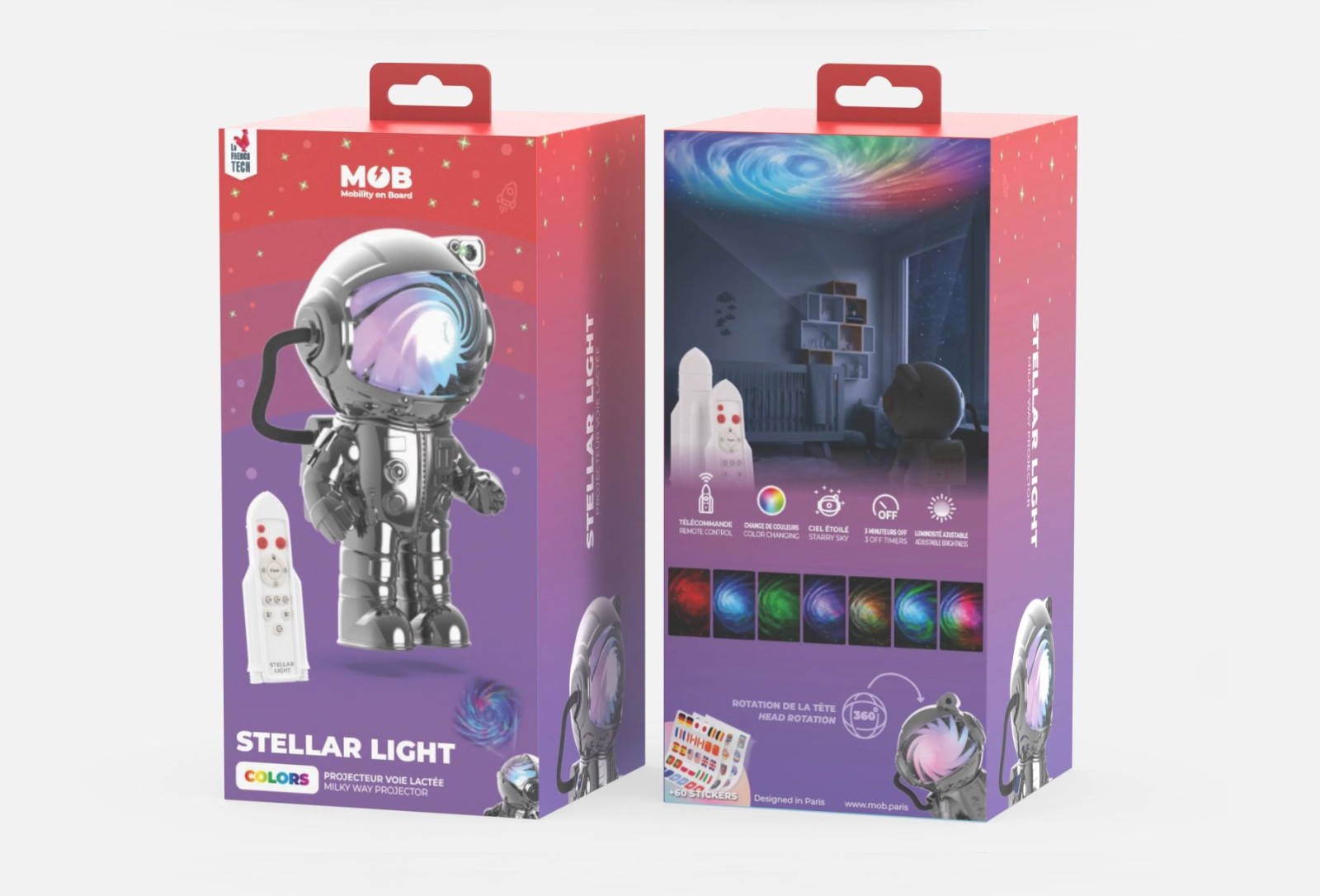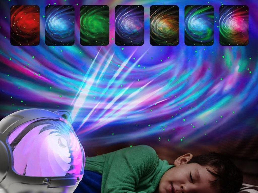 Projektor rozzáří pokoj pohyblivou Mléčnou dráhou v sedmi barevných variantách – od decentních pastelů po intenzivní barvy. V kombinaci s měsícem přináší dětem klidnou atmosféru i špetku světelné magie a dobrodružství.