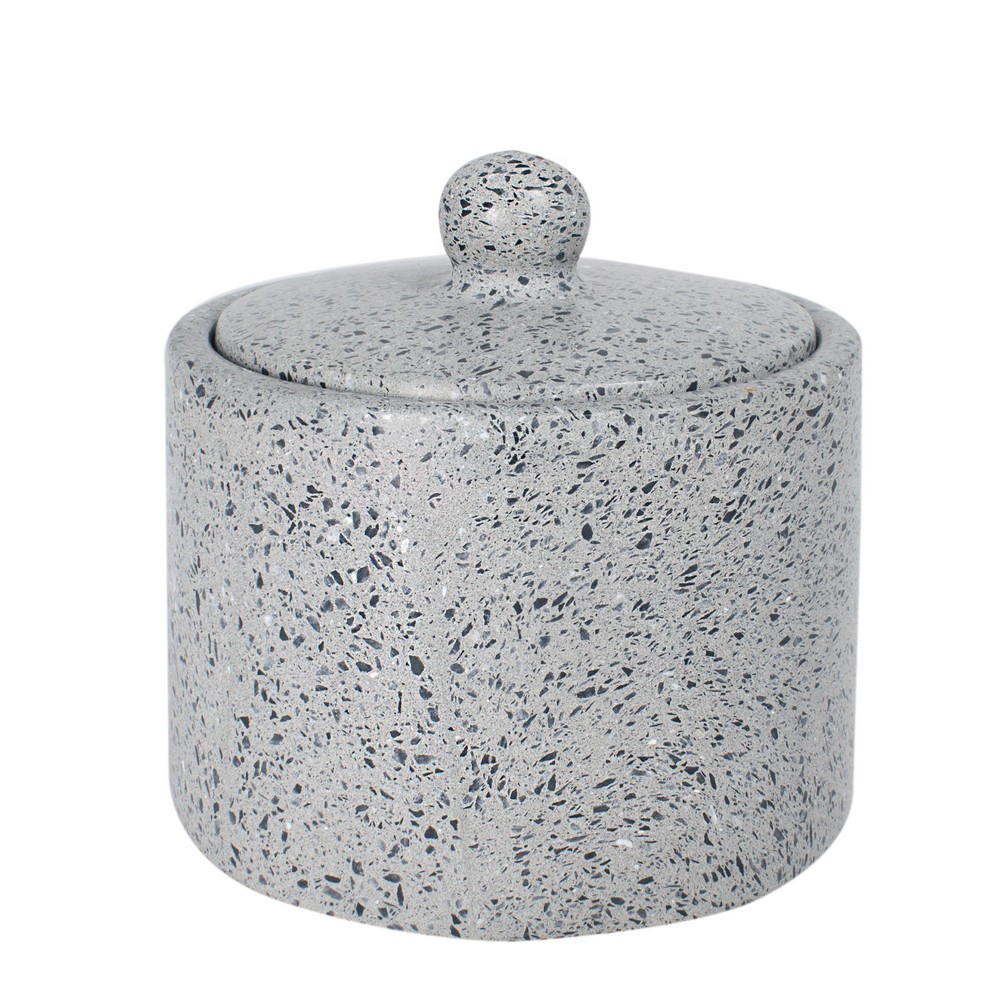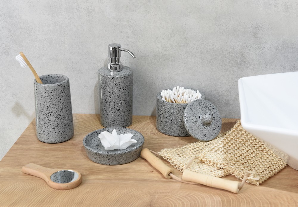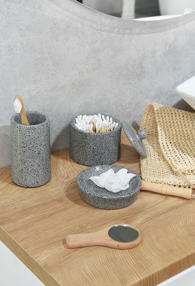 Stylová kosmetická nádoba s víkem je jedním z prvků kolekce Perfect Minimalism – koupelnových doplňků Q-BATH z teraca. Bezkonkurenční kvalita použitého materiálu a jedinečný a klasický design z něj činí jeden z nejkrásnějších prvků naší kolekce. Je šedé barvy s charakteristickými, tmavšími akcenty. Nádoba je určena na kosmetické předměty. Stane se také stylovým doplňkem každého toaletního stolku nebo místem pro uložení cenných šperků.