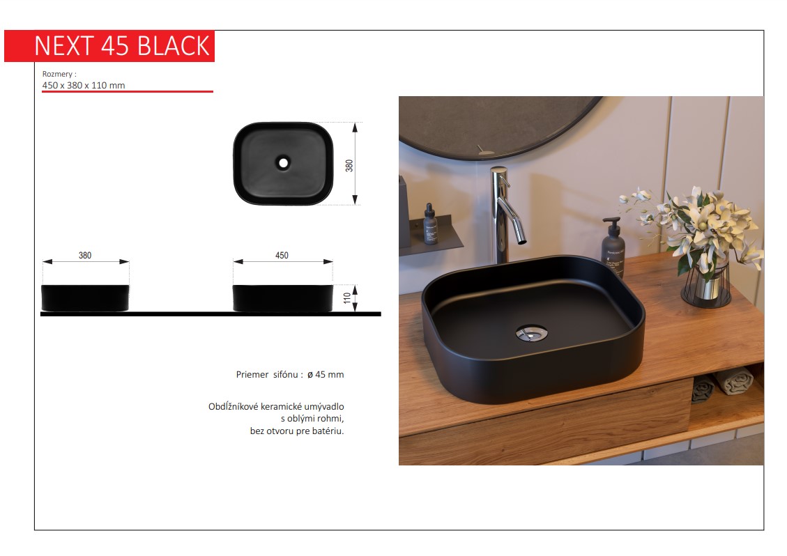 NEXT 45 BLACK keramické umyvadlo na desku, černé