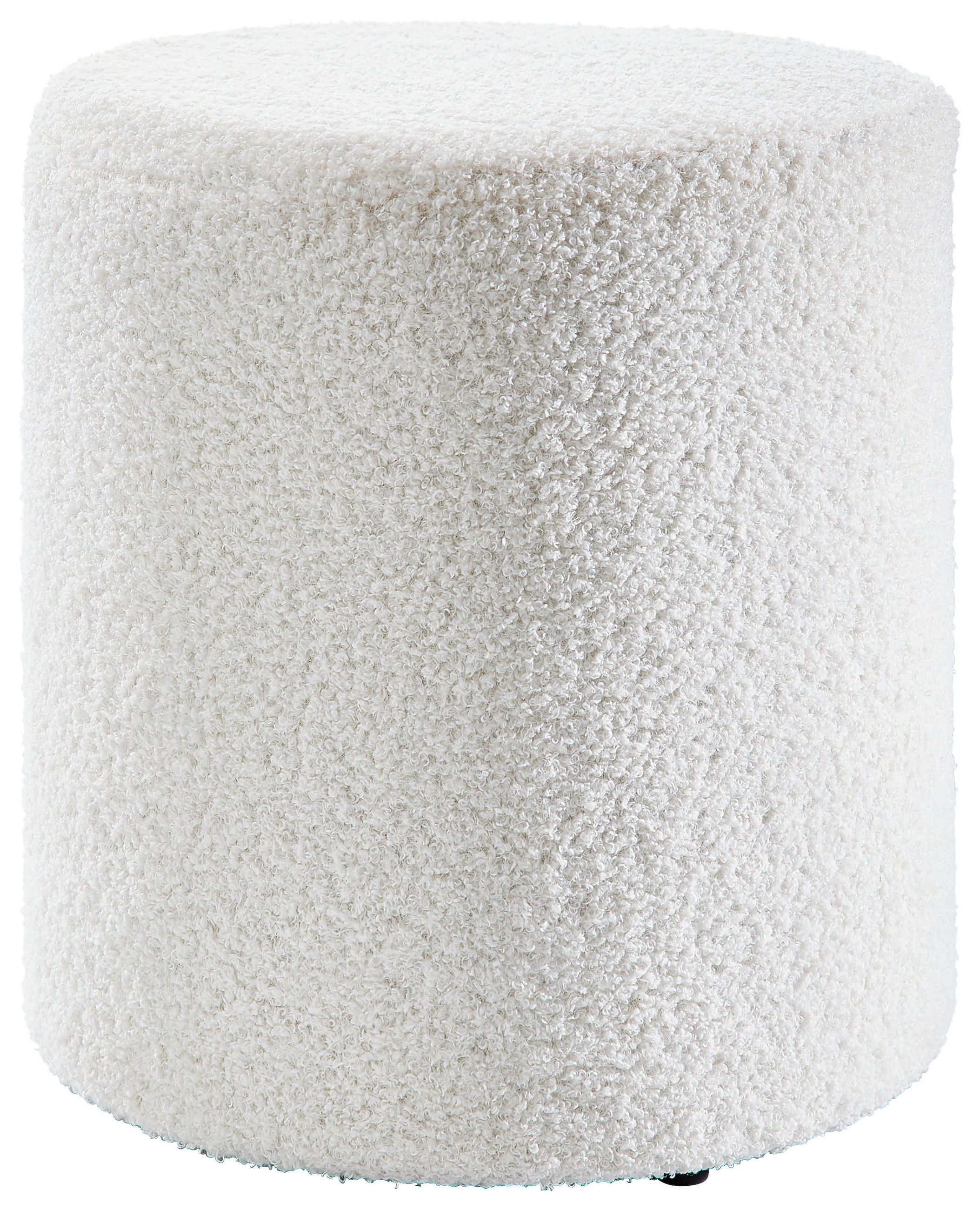 TABURET, textil, kompozitní dřevo, 35/36/35 cm – TYP:B413110-3, TEDDYVLIES WEIß – RUND, FÜßE KUNSTST. SCHWARZ – B/H/T: 35/35/33 CM