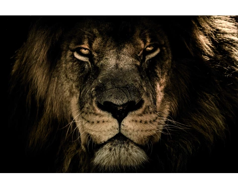 Obraz na plátně 118×78 cm s motivem lvího pohledu v hnědých tónech se stane nepřehlédnutou dekorací každého interiéru.