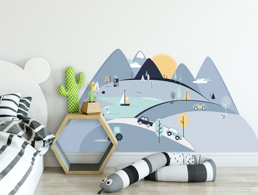 Pastelowe Love Nálepka na zeď – barevné hory Velikost: S, barva, velikost: nebesky modrá