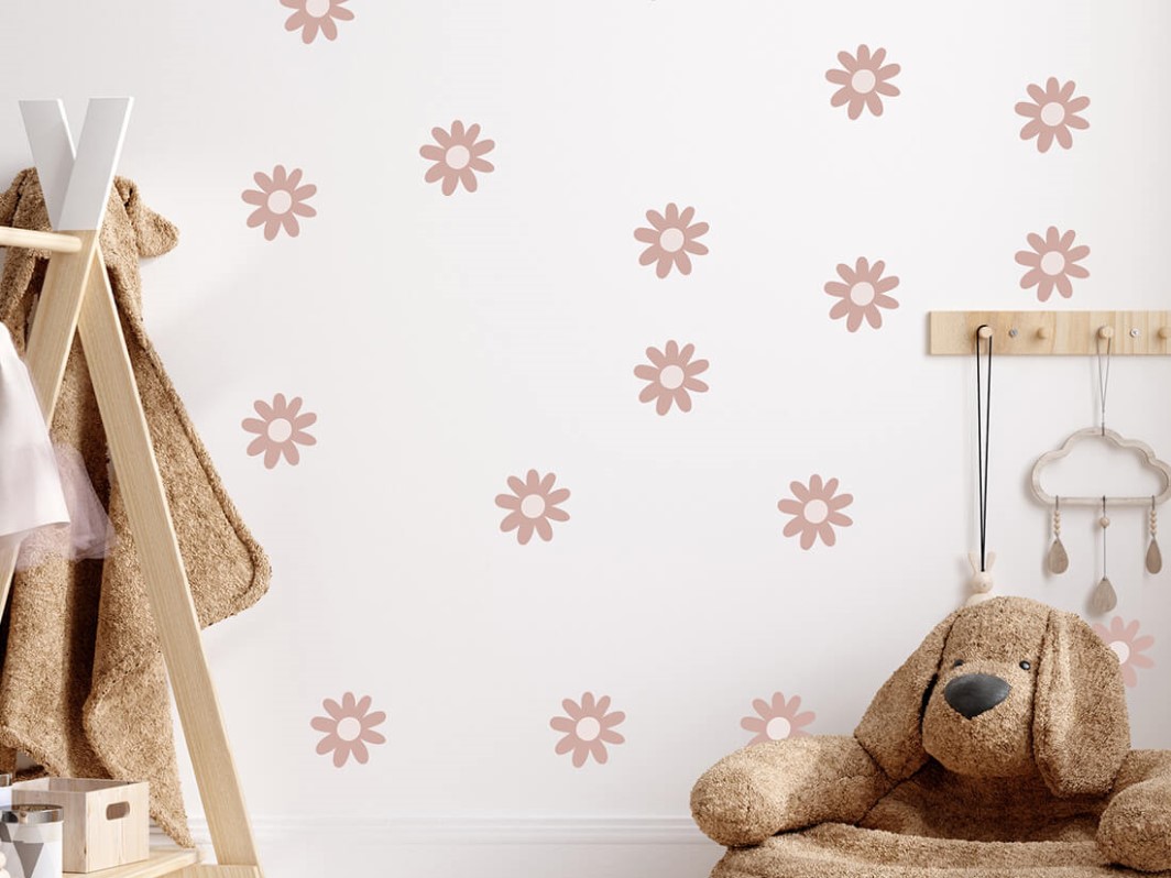 Samolepky na zeď s kopretinami v přírodních barvách