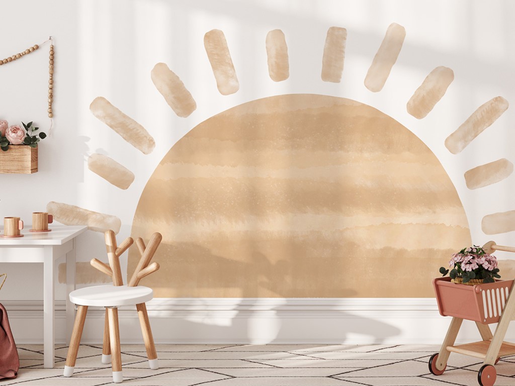 Nálepka na stěnu s polovičním sluncem (zapadajícím sluncem) vykouzlí příjemnou atmosféru v každé místnosti. S velkou samolepkou Slunce sluníčko u vás doma nikdy nezapadne, jeho paprsky zútulní místnost a navodí pocit tepla. Nálepka na zeď je opatřena speciálním matným laminátem, který ji chrání před poškrábáním při každodenním používání, a také usnadňuje lepení – film je tlustší a snadněji se přenáší na stěnu.