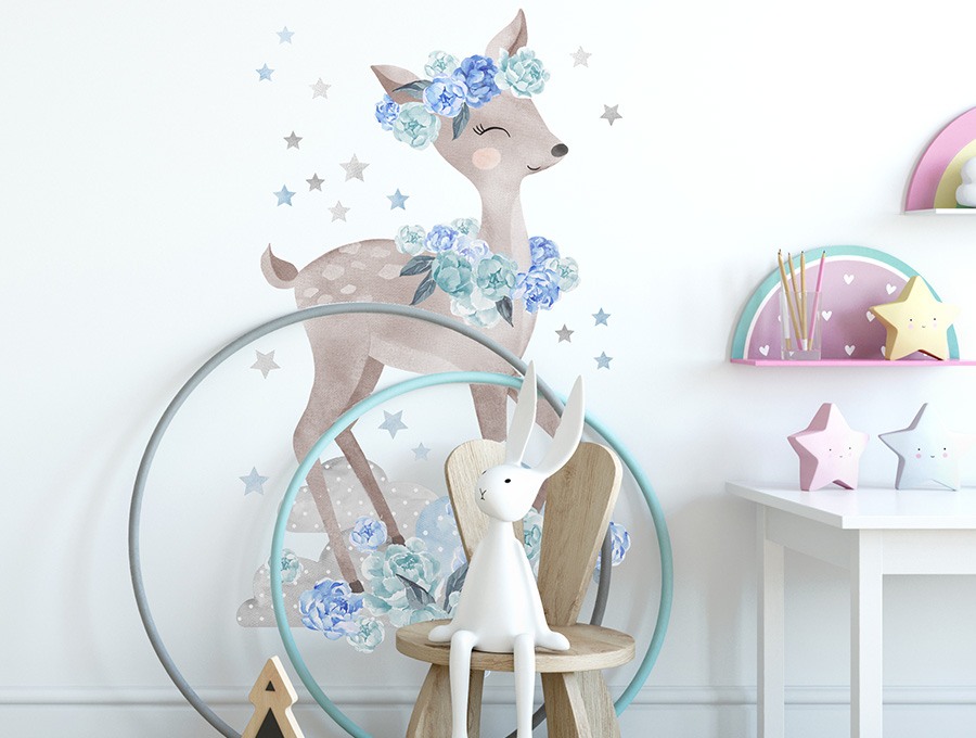 Pastelowe Love Nálepka na zeď – srnka v růžích barva: Modrá