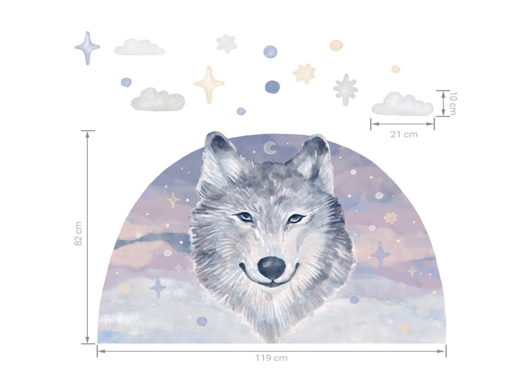 Sada samolepek na zeď s vlkem je ta pravá dekorace do dětského pokoje pro všechny děti, které mají rády zvířátka. Vkusná nálepka se bude skvěle vyjímat za dětskou postelí, postýlkou, psacím stojem nebo s ní vydekorujete hrací koutek. Nálepka ve velkém rozměru je nejen krásnou a nepřehlédnutelnou dekorací, ale zároveň chrání zeď před znečištěním nebo poškozením.