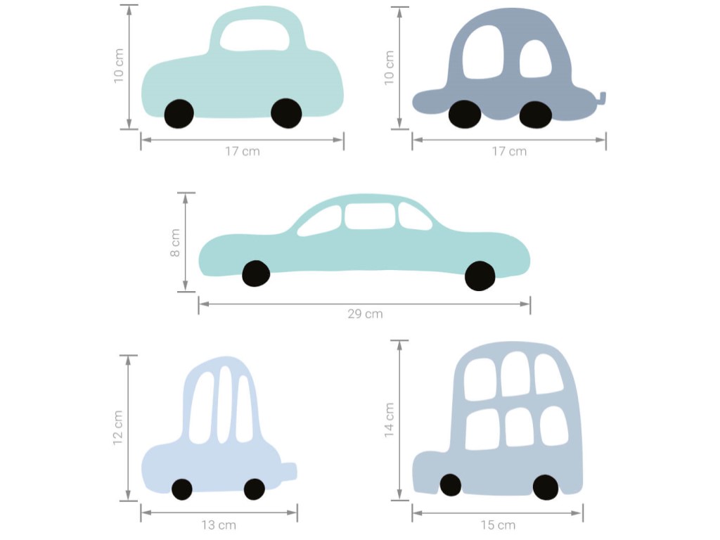 S nádhernou sadou dětských samolepek na zeď auta vytvoříte úžasnou místnost na téma dopravní prostředky. V sadě je 5 verzí autíček. Celá sada obsahuje 20 ks samolepek. Nálepky na zeď auta je možné umístit na jakýkoli hladký povrch, což vám umožní zdobit nejen stěny, ale i nábytek, okna a vytvořit si tak vlastní vozový park. Nálepka na zeď je opatřena speciálním matným laminátem, který ji chrání před poškrábáním při každodenním používání, a také usnadňuje lepení – film je tlustší a snadněji se přenáší na stěnu.