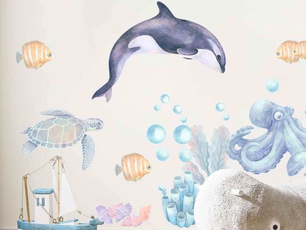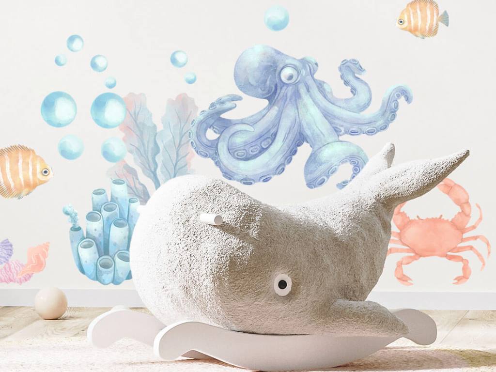 Sada nálepek na stěnu s mořskými živočichy, v krásném barevném provedení, může zdobit i Váš dětský pokojíček. Nechte mořská zvířátka plout po poličce, nad postýlkou nebo podlahou. Zkombinujte tuto sadu samolepek s podobnými samolepkami z naší nabídky. Vytvoříte tak z dětského pokoje originální a obdivuhodný podmořský svět s výhledem do hlubiny oceánu plného ryb, mořských řas, krabů a mušlí.