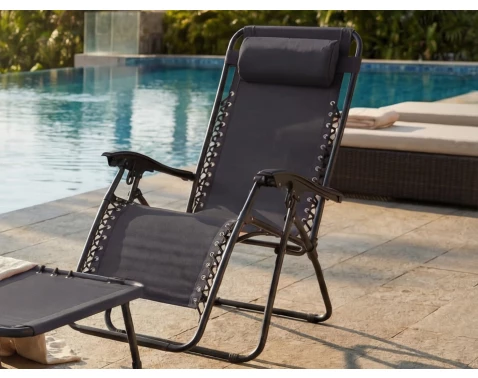 Až již se rozhodnete pro relaxování na slunci či ve stínu, tak Vám toto polohovatelné zahradní lehátko vždy dobře poslouží. Z kombinace kovu a černé látky.