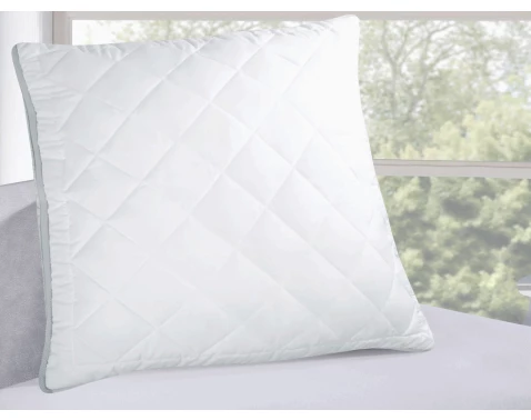 Bílý prošívaný polštář 70×90 cm s 3. D klimabandem pro zdravý spánek. Prodyšný, měkký a vhodný pro alergiky.