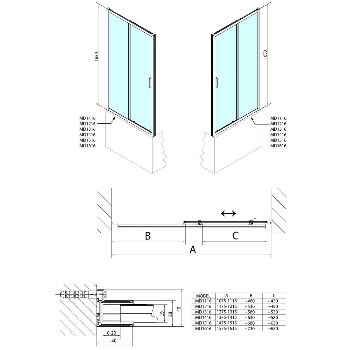 POLYSAN – DEEP sprchové dveře 1100×1650, čiré sklo MD1116