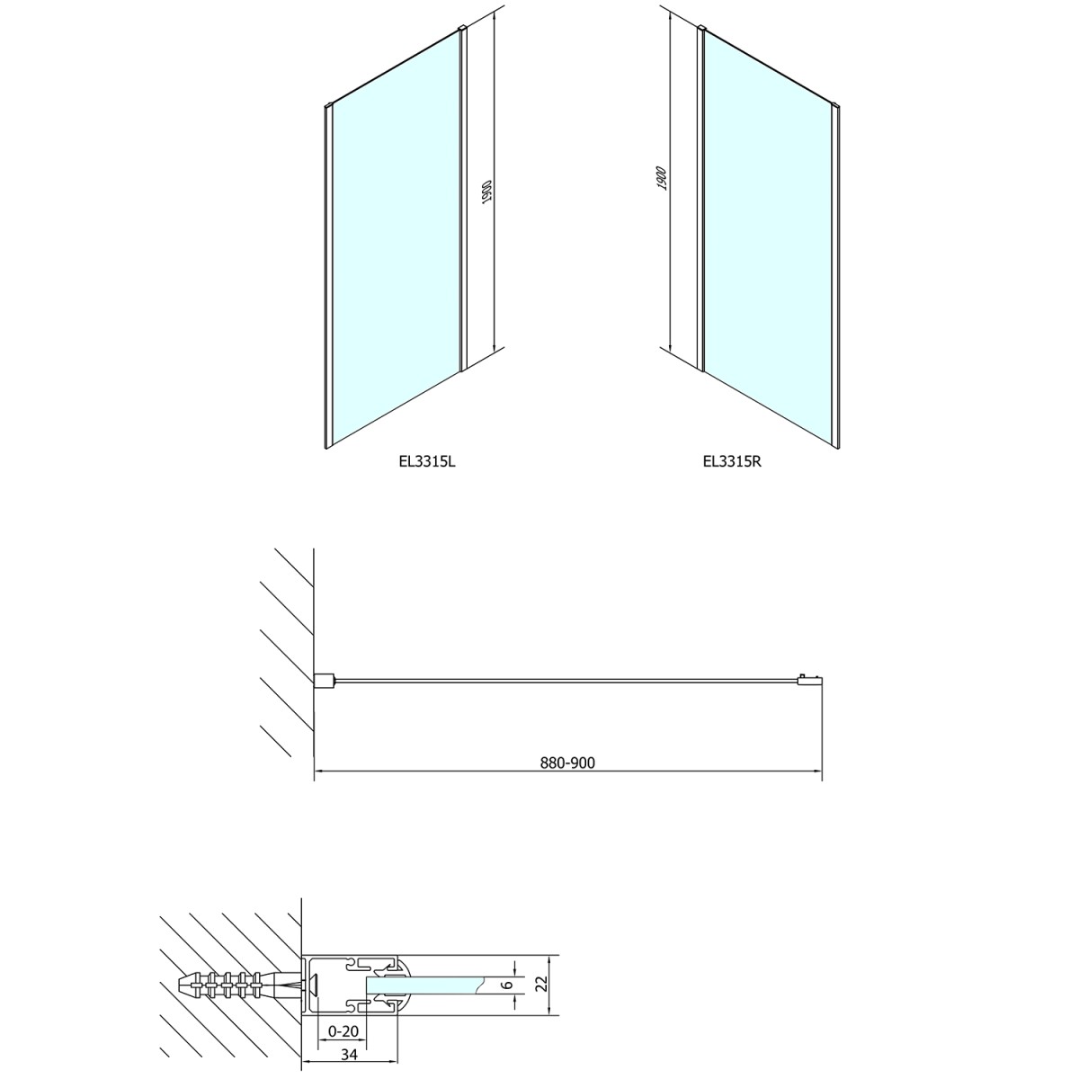 10 105 KčPOLYSAN – EASY boční stěna 900, čiré sklo EL3315