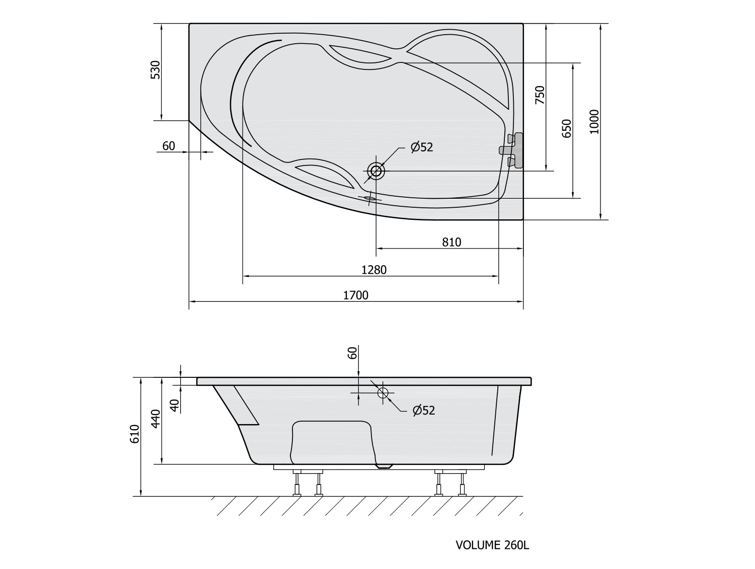 POLYSAN – MAMBA R asymetrická vana 170x100x44cm, bílá 77111