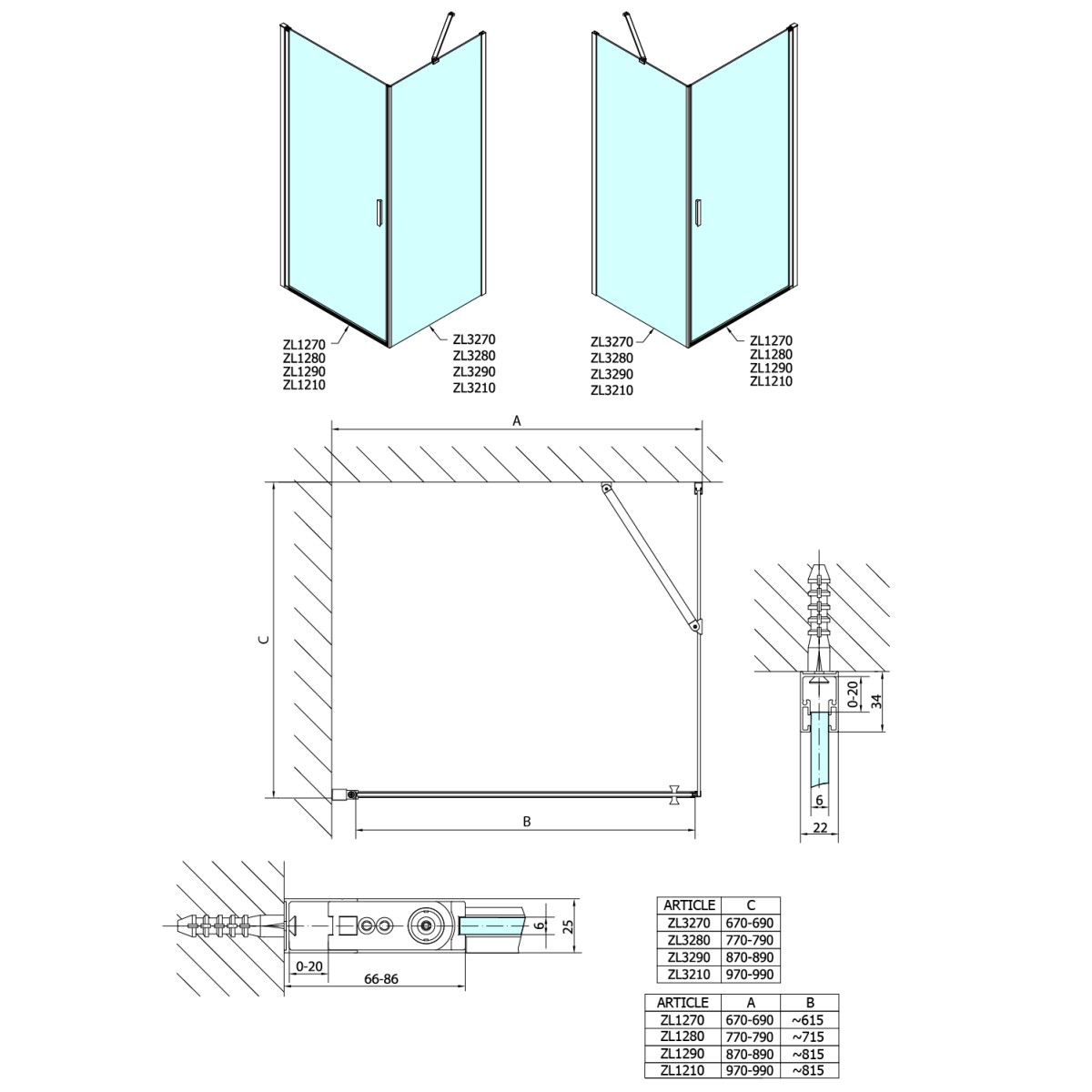 Svěží design sprchových zástěn série ZOOM je propracován do nejmenších detailů. Sprchové dveře s hranatými otočnými profily se zvedacím mechanismem umožňují snadné otevírání vně i dovnitř a zaručují maximální šířku vstupu. Výjimku tvoří čtvrtkruhové zástěny typu ZL2615 (90×90 cm) a ZL2616 (100×100 cm), které se otvírají pouze…