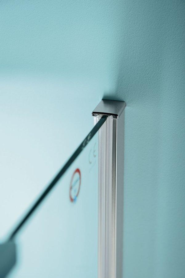 Ochranu proti přetečení vody u bezrámových zástěn zajišťuje nízká přetoková lišta, která dotváří čistý vzhled zástěny. Bezrámové zástěny tak působí svěžím elegantním dojmem.