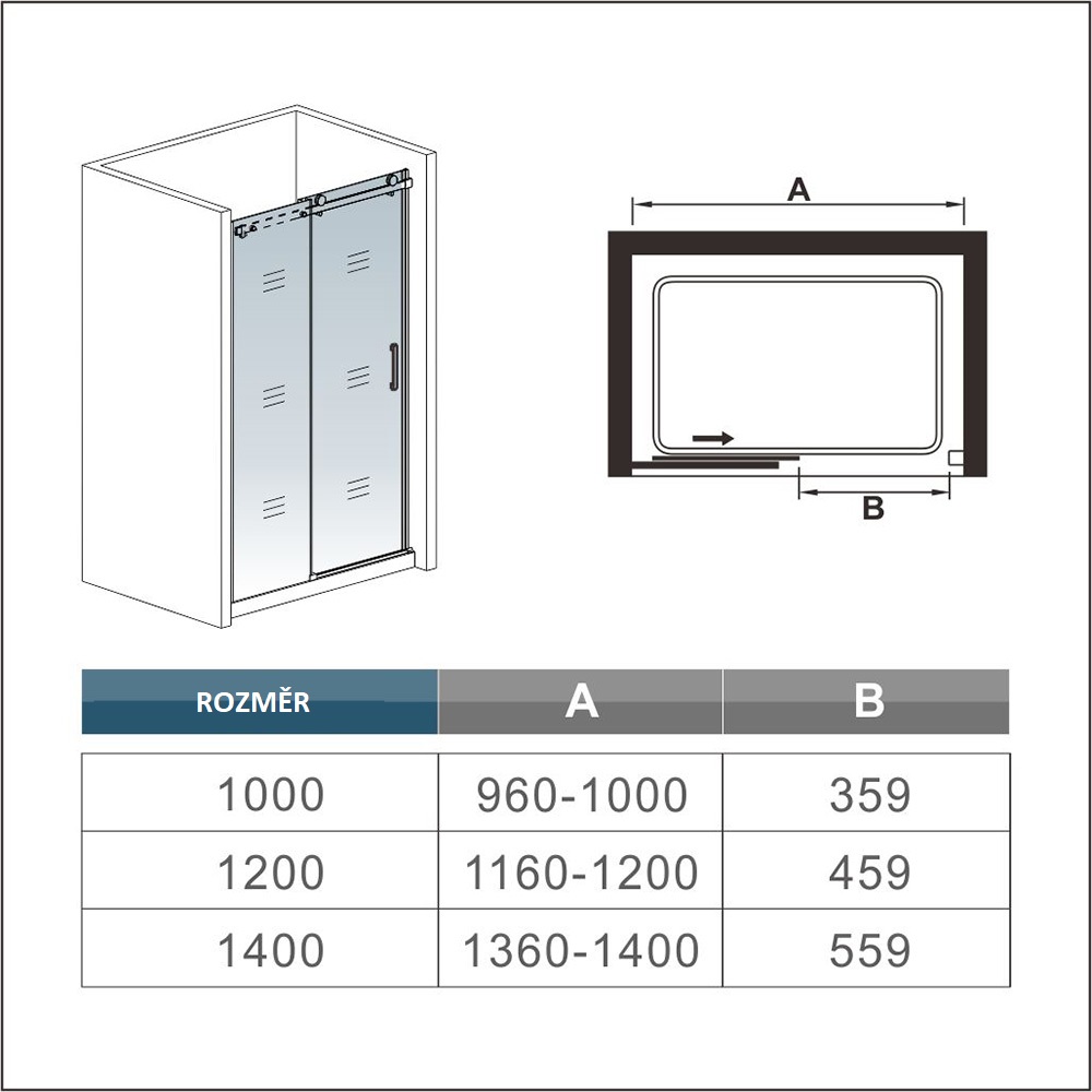Posuvné sprchové dveře DIAMOND BLACK 96- 100x200cm L/P varianta
