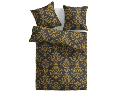Bavlněné ložní povlečení v černé barvě s elegantním motivem zlatých ornamentů rychle a snadno promění vzhled Vaší ložnice.