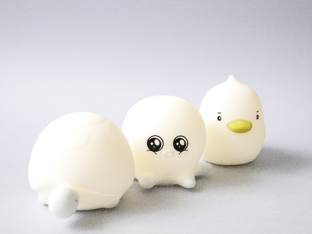 Dětské lampičky můžete snadno ovládat pouze dotykem. Když je lampa zapnutá, vyzařuje bílé teplé světlo po dobu jedné minuty. Poklepáním na silikonový povrch se změní barva. Lampička se automaticky vypne po jedné minutě nečinnosti. Plášť svítících zvířátek je vyroben z měkkého silikonu, což znamená, že při zmáčknutí lampička změní tvar a po několika okamžicích se vrátí do původního tvaru.