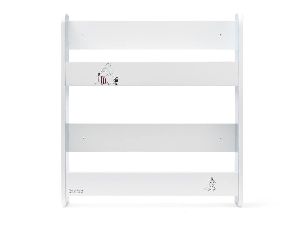 Knihovna pro děti z kvalitního certifikovaného dřeva v bílé barvě zaujme na první pohled něžným motivem objímajících se mumínků, které si v pohádkách oblíbili děti na celém světě. Knihovnička v barevně neutrálním provedení si najde místo v království chlapců i holčiček.