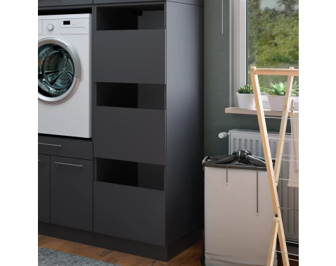 Regál s dvířky z kolekce Mr. Sauber v antracitové barvě nabízí moderní a praktické úložné řešení do koupelny, prádelny nebo i jinam.