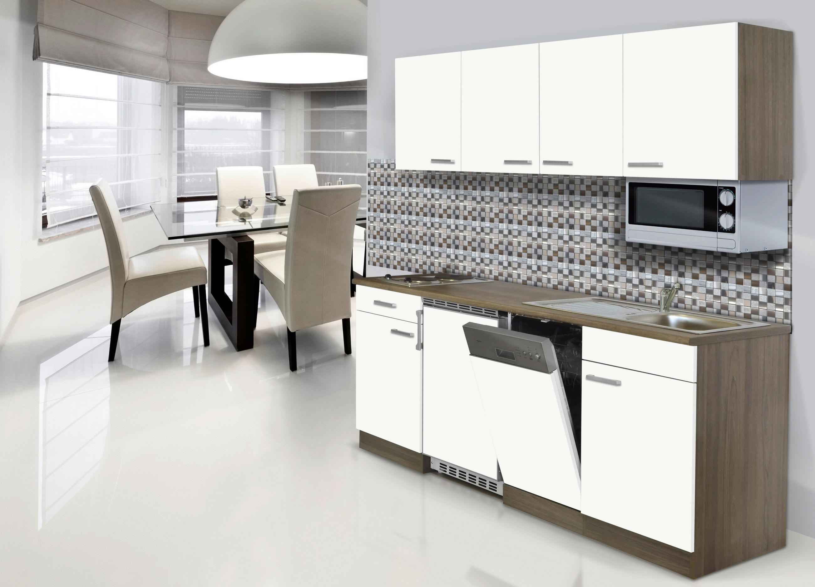 KUCHYŇSKÝ BLOK – TYP: KB195EYWMI, – KP: EICHE YORK NB, – FR: WEIß, BXHXT CA. 195X200X55