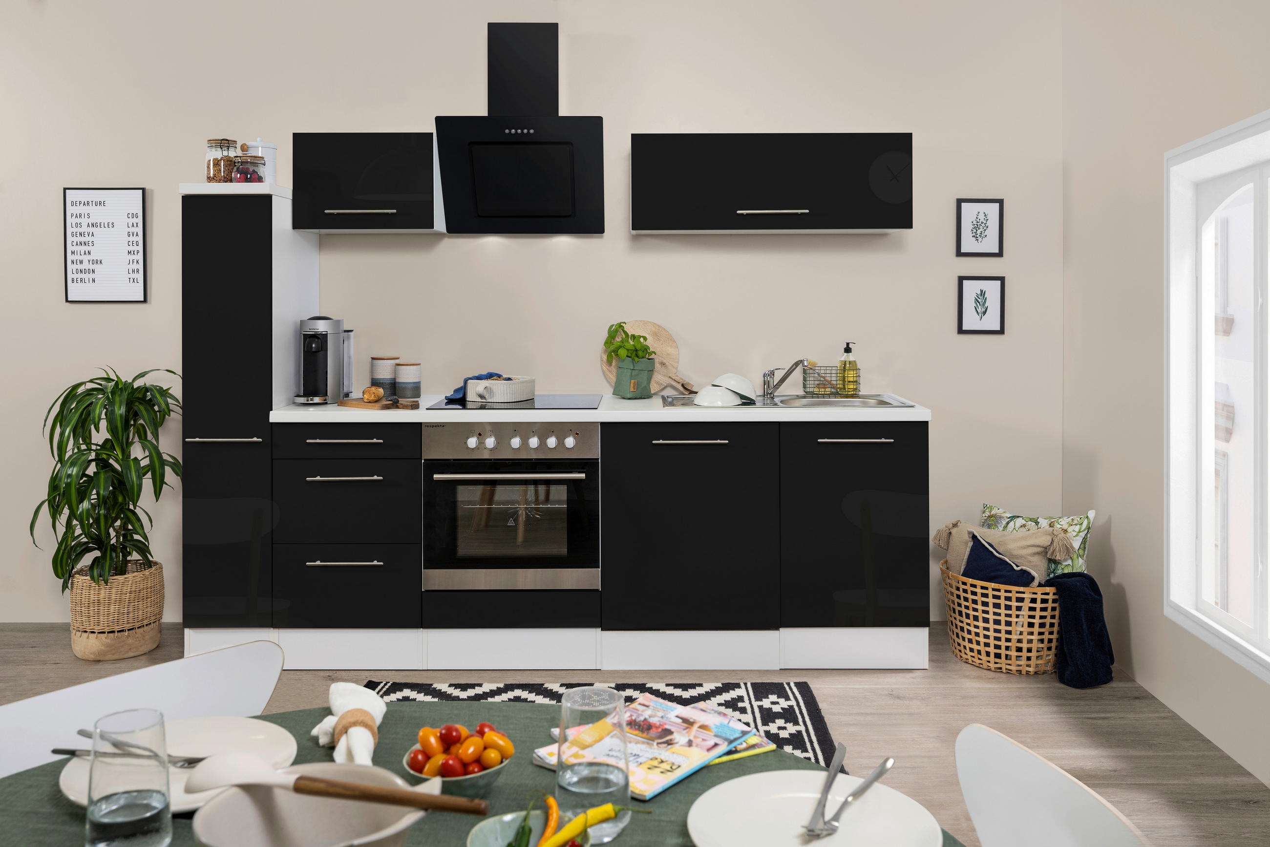 KUCHYŇSKÝ BLOK – TYP:RP250WSC,KÜCHENBLOCK250CM – INKL3ELEKTROGERÄTE,FRONTSCHWAR – KORPUS+ARBEITSPLATTE WEISS