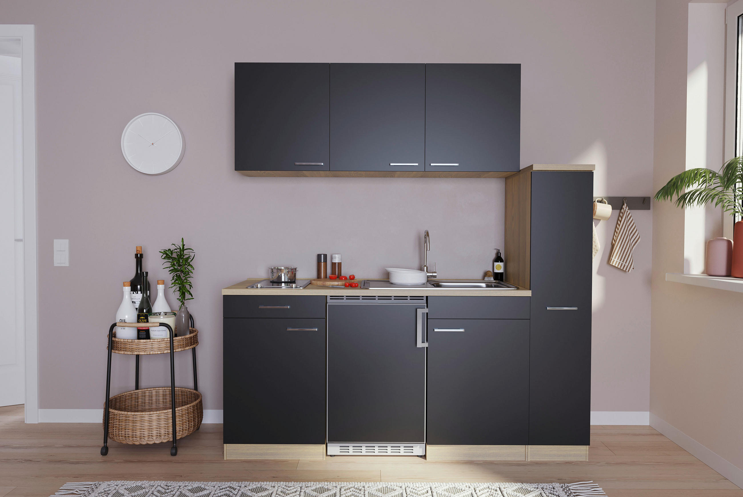 KUCHYŇSKÝ BLOK – TYP: KB180ESSC – SCHWARZ – INKL. E-GERÄTE, B: 180 CM