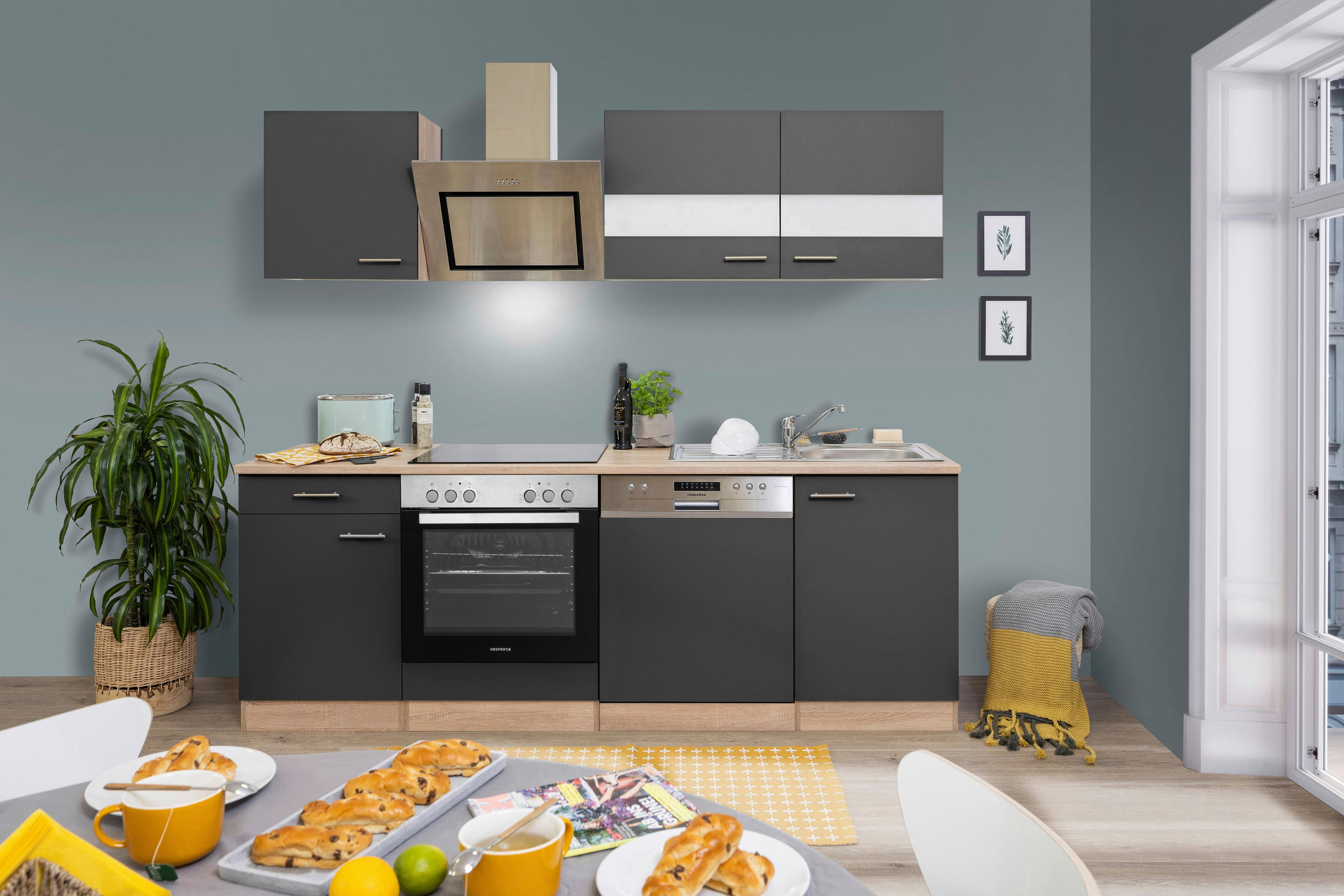 KUCHYŇSKÝ BLOK – TYP: KB220ESGSC – GRAU – INKL. E-GERÄTE, B: 220 CM