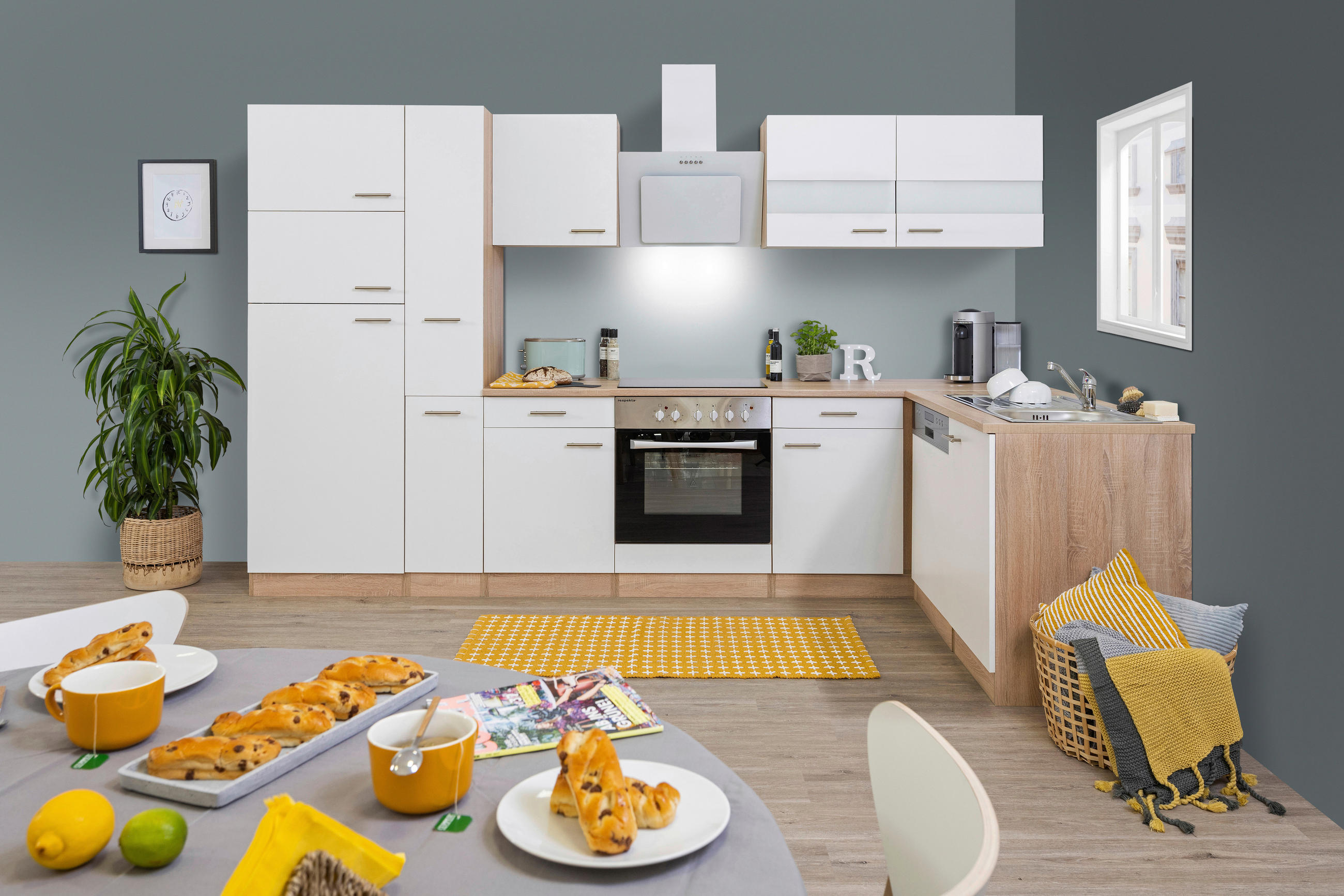 KUCHYŇSKÝ BLOK BEZ SPOTŘEBIČŮ – TYP:LBKBL310ESW,310CM,RESPEKTA – ECONOMY LEERBLOCK,FR.WEIß, – A.PLATTE & KO. EICHE SONOMA,