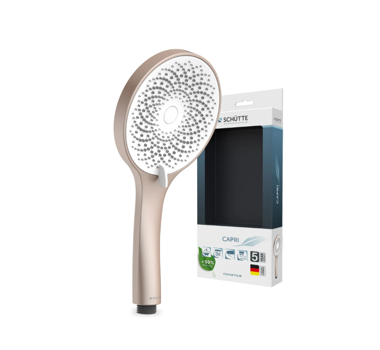 Elegantní ruční sprcha CAPRI v jemném matně růžovo-bílém provedení přináší do vaší koupelny moderní design a každodenní pohodlí. Díky tryskám s ochranou proti vodnímu kameni se snadno čistí a zajišťuje dlouhou životnost i stabilní proud vody.