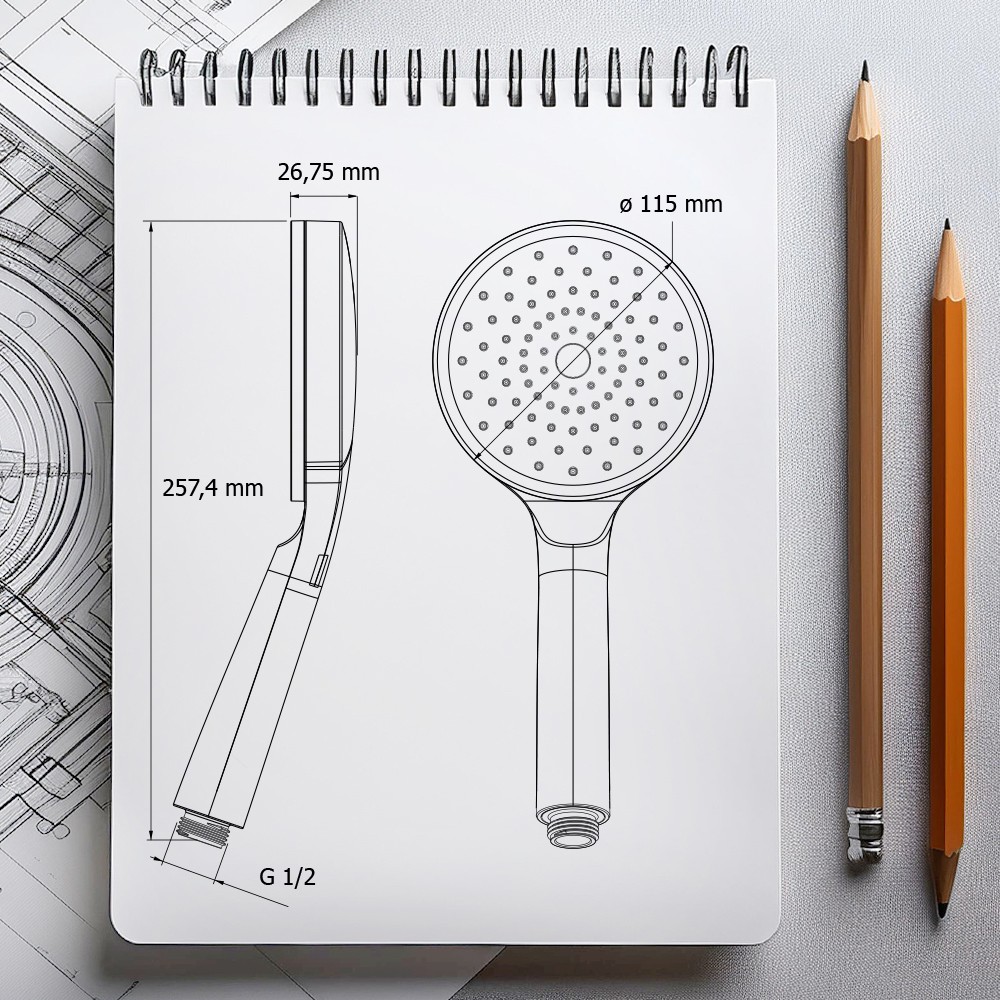 Popis: Černá matná sprchová hlavice AWD INTERIOR se širokou hlavicí o průměru 115 mm je moderním a elegantním řešením pro koupelny v minimalistickém, podkrovním nebo industriálním stylu. Vyrobeno z odolného a voděodolného materiálu ABS, má jednotný matný povrch, který vyzařuje luxusní pocit. Jeho univerzální standardní tvarovka usnadňuje spárování s většinou sprchových hadic. Široká hlava poskytuje…