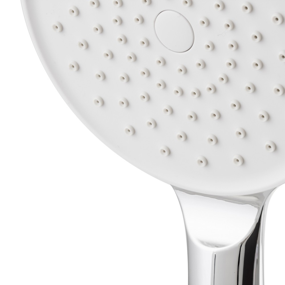 Popis: Stříbrná sprchová hlavice AWD INTERIOR se širokou hlavicí o průměru 115 mm je elegantním a funkčním doplňkem do každé koupelny. Vyrobeno z odolného, voděodolného ABS materiálu, má vysoce lesklý stříbrný povrch a vytříbený estetický vzhled. Bílý střed hlavy dodává jemný, klasický nádech. Jeho univerzální tvarovka standardní velikosti zajišťuje snadnou kompatibilitu s většinou sprchových…