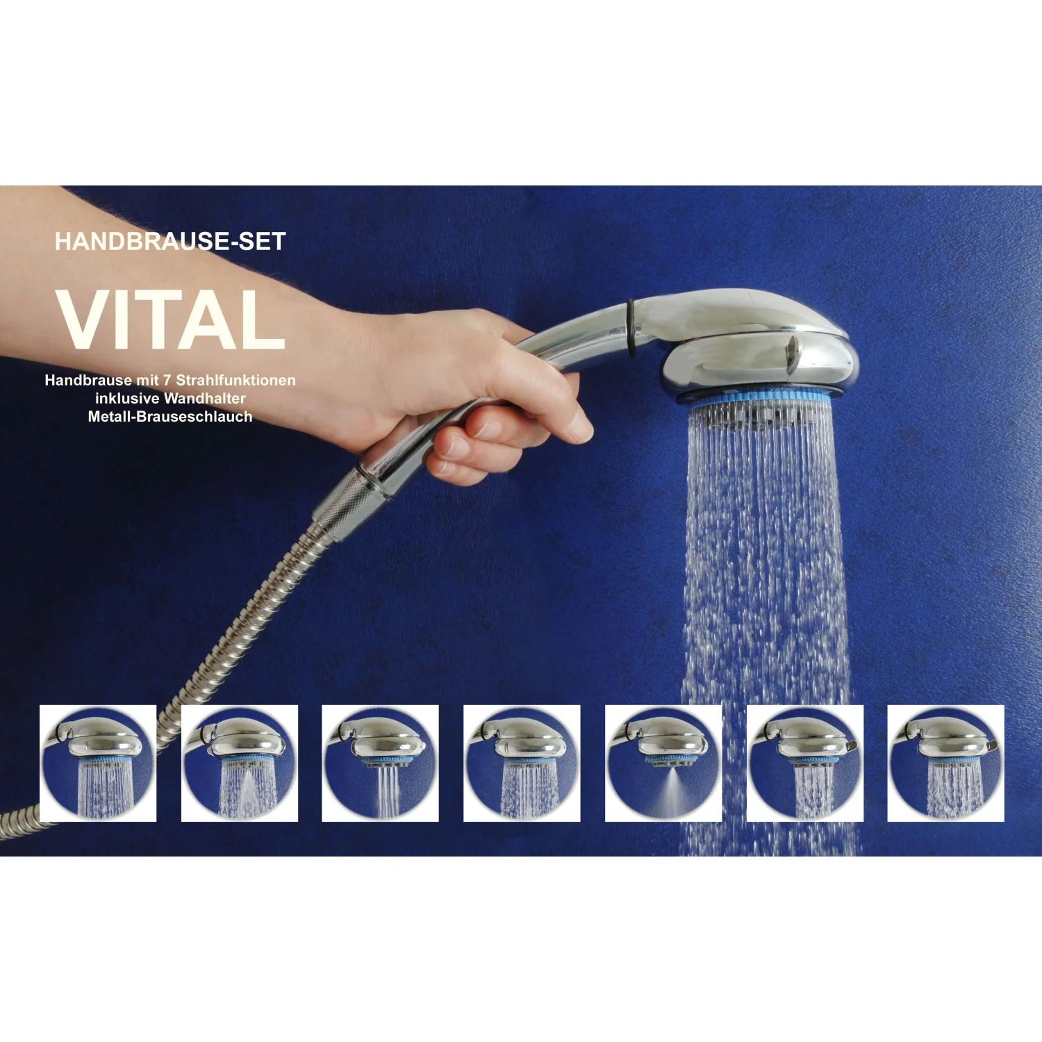 Ruční sprcha VITAL, 7 funkcí, chrom, úsporná, Waterstop, ½″