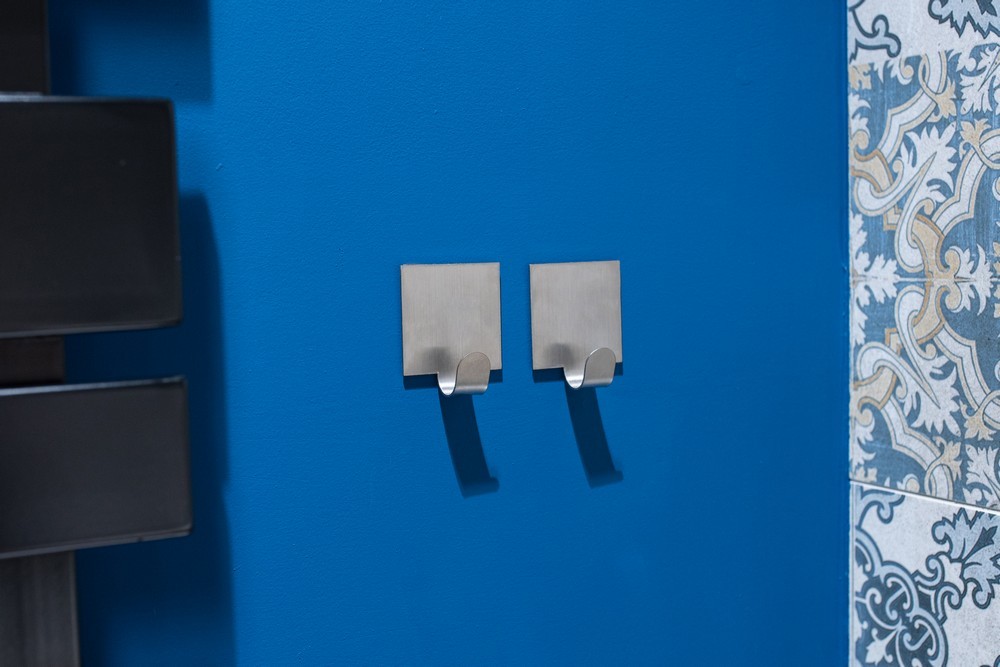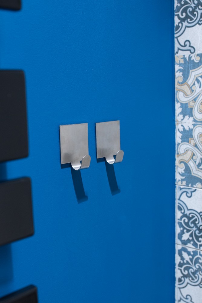 Čtvercový nástěnný háček z nerezové oceli, který se instaluje pomocí lepicí pásky 3M. Sada obsahuje 2 věšáky. Maximální nosnost jednoho háku je až 4 kg.