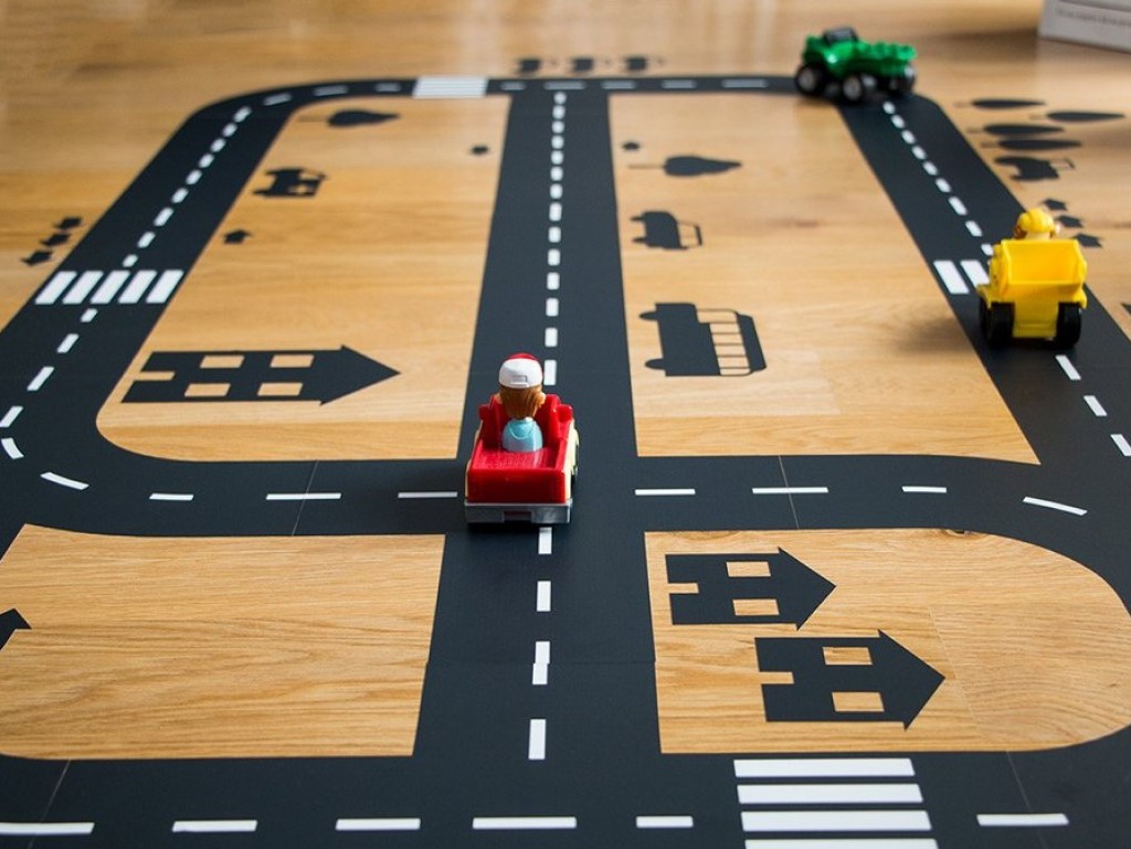 Sestava nálepky je dětská hra. Stačí nalepit jednotlivé prvky silnice podle plánku a uspořádat stromy, auta a domy dle vlastního uvážení. Lepidlo je extrémně odolné a neovlivňuje povrch. Pro odstranění stop stačí podlahu otřít vlhkým hadříkem s trochou saponátu.