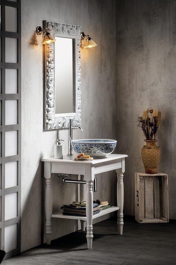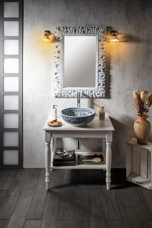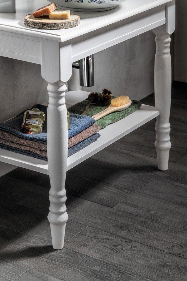Umyvadlové stolky CIMBURA v rustikálním stylu navodí atmosféru venkovského stavení. Stolky jsou vyrobené ze smrkového masivu, mají soustružené nohy a řemeslná zručnost se odráží i v desce s oble vyřezanou hranou. Stolek je vhodný pro umyvadla na postavení, absence šuplíku umožňuje libovolné umístění umyvadla i baterie v prostoru desky. Navíc je doplněn o praktickou spodní polici. V nabídce v šíři 80 a 100 cm a barevném provedení starobílá a mořený smrk.