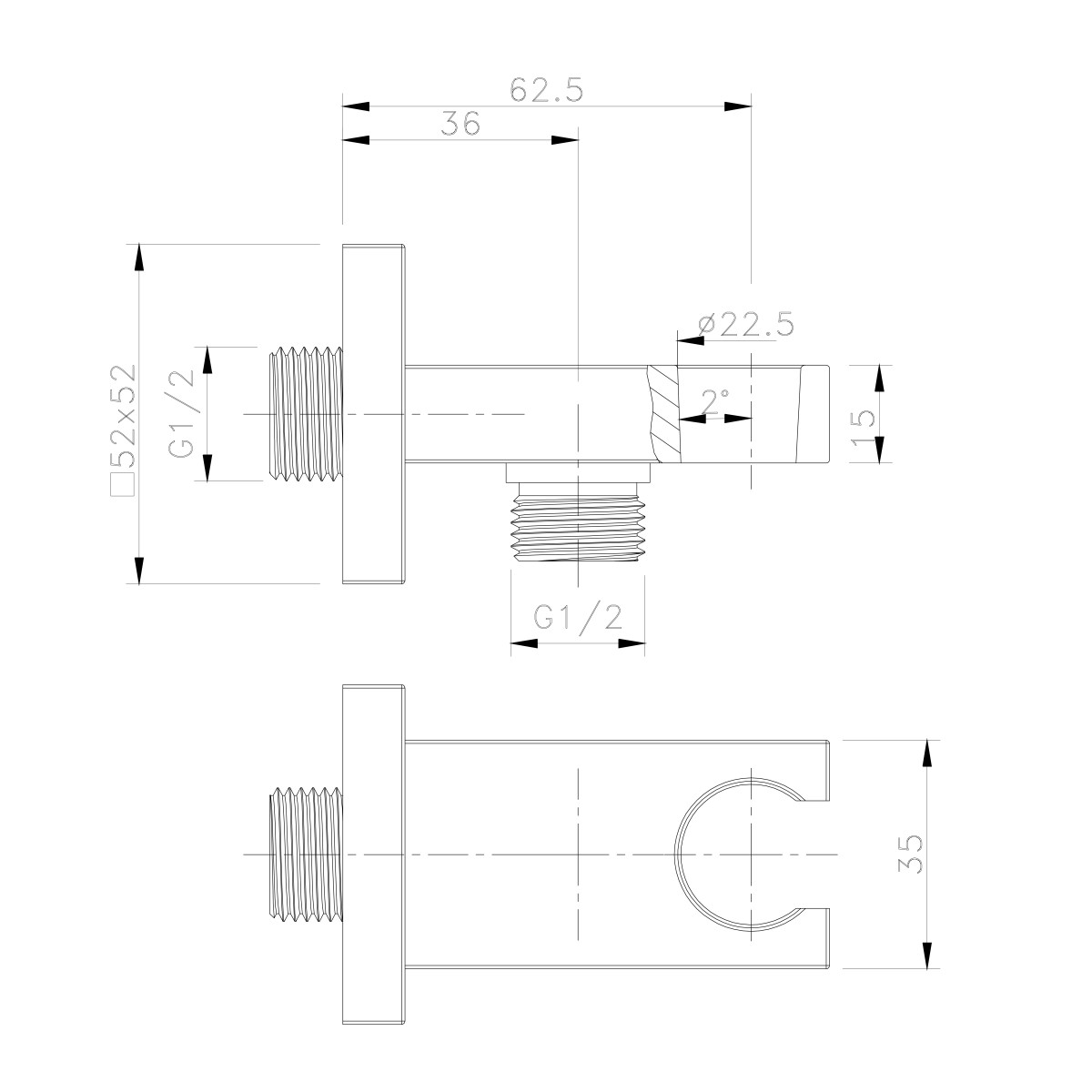 SAPHO – Držák sprchy hranatý, pevný, s vyústěním, zlato mat AQ591GB