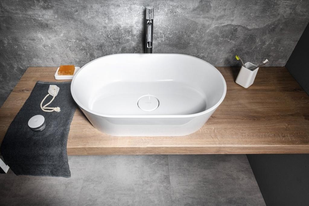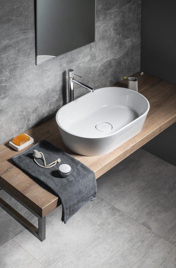 1 703 KčSAPHO – GERANO umyvadlo na desku, litý mramor, 60x38cm, kryt výpusti, bílá GN600