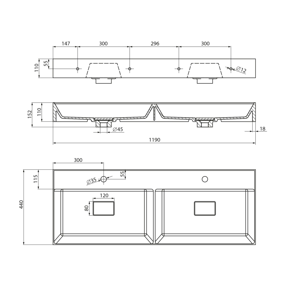 593 KčSAPHO – GODIVA dvojumyvadlo, litý mramor, 119x44cm, bílá GU119