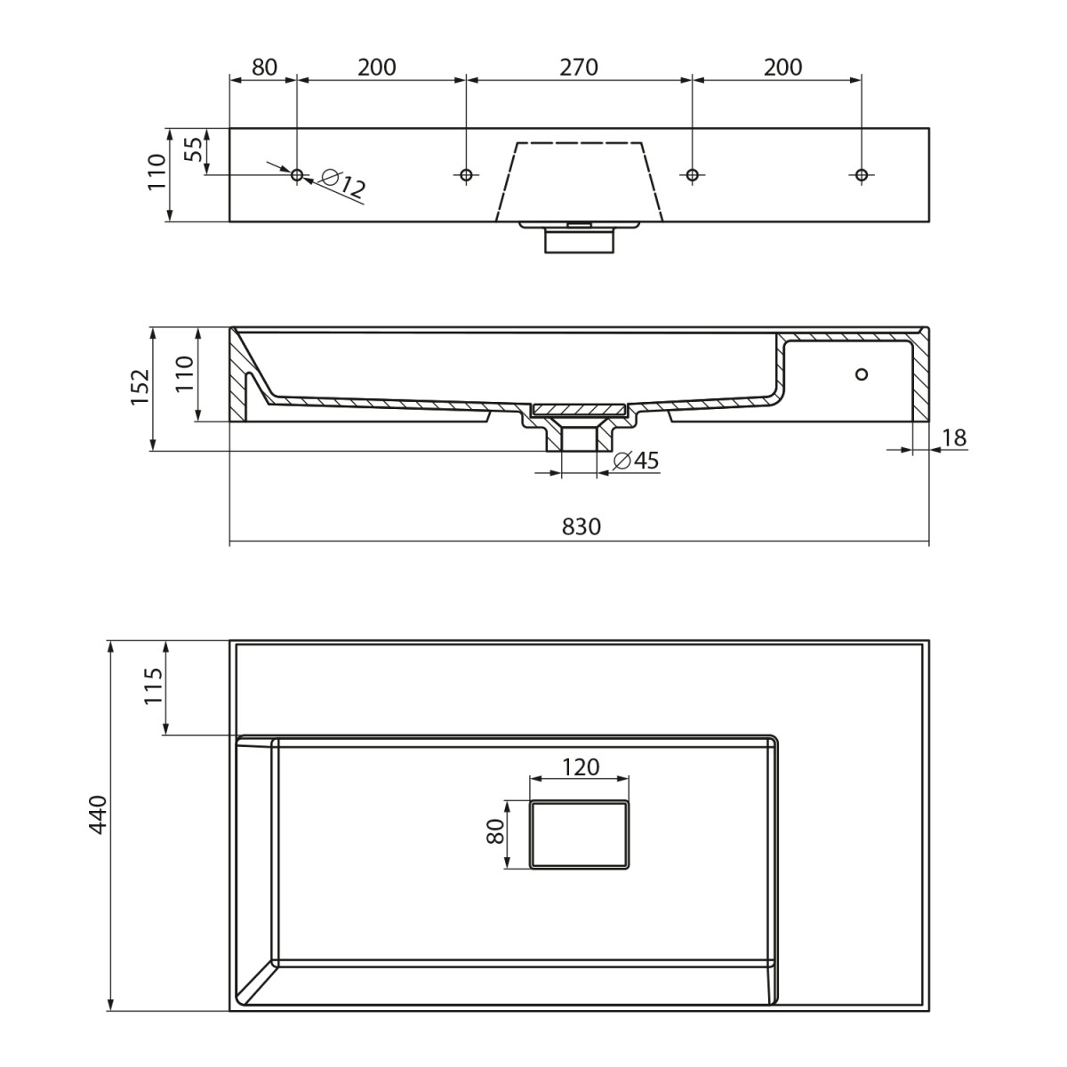 593 KčSAPHO – GODIVA umyvadlo, litý mramor, 83x44cm, bez otvoru, bílá GU083L-0
