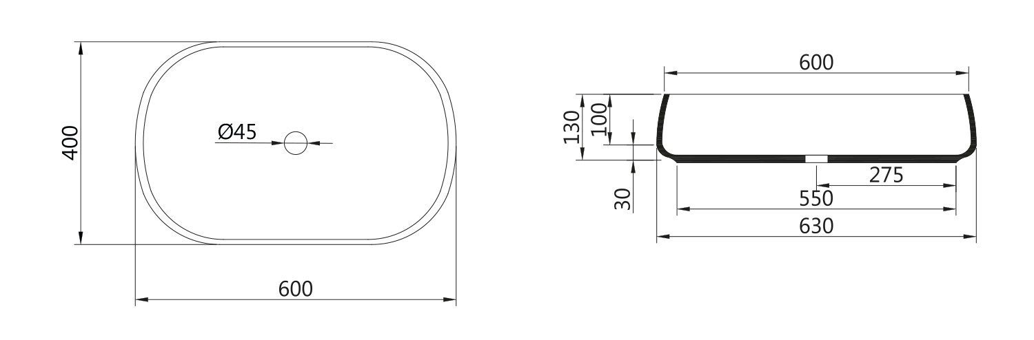 5 031 KčSAPHO – JUMPER keramické umyvadlo na desku, 60x40cm, bílá WH070