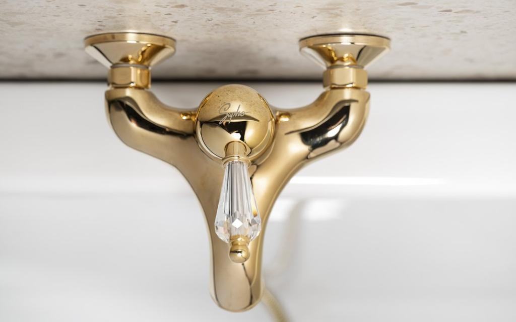 4 635 KčSAPHO – KIRKÉ CRYSTAL nástěnná vanová baterie, páčka krystal, zlato KI10KZ