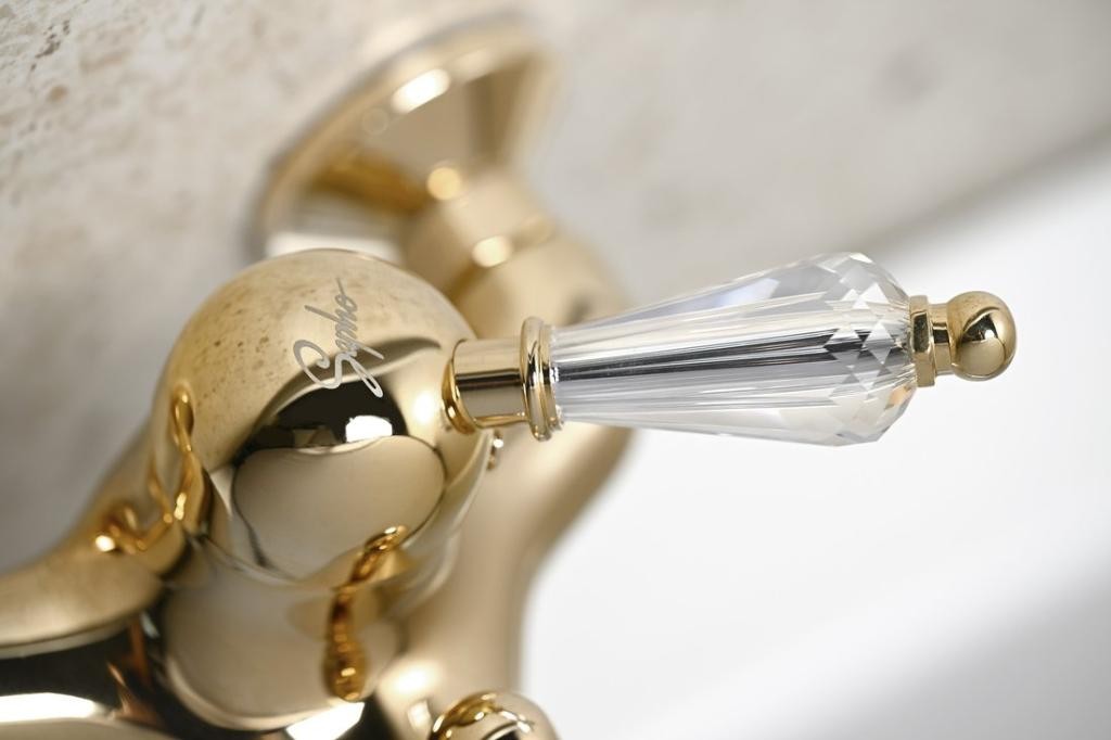 Vodovodní baterie KIRKÉ CRYSTAL se svým designem řadí mezi baterie, které můžete použít jak v koupelně moderní, tak i v koupelně zařízené v retro stylu. Oproti kohoutkovým retro bateriím poskytují výhodu v pákovém ovládání. Proto je mnohem snadnější nastavit teplotu i průtok vody. Baterie mají také mnoho „tváří“ ve smyslu barevného provedení. V naší nabídce je naleznete v chromu, bronzu a zlatě. Baterie se pyšní páčkou s krystalem Swarovski.