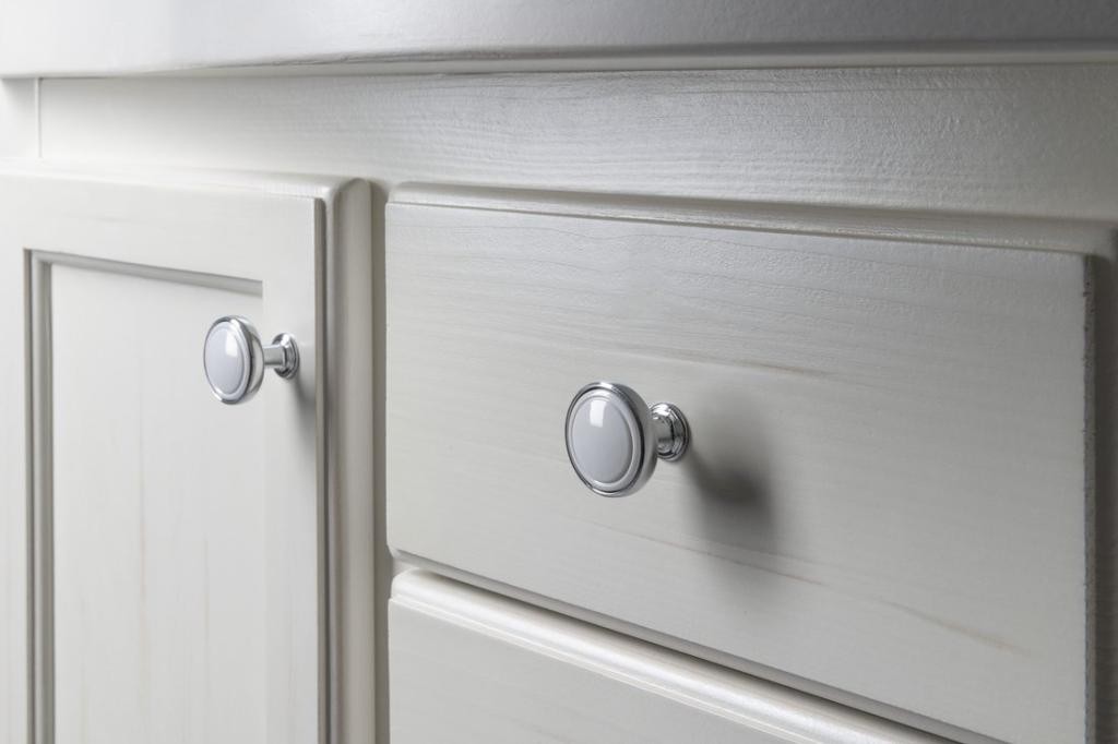 Kovová knopka na nábytek průměr: 30 mm povrch: chrom lesk / bílý plast součást balení: 1x šroub M4